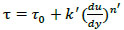 | k', n' | = the index constant of Herschel-Bulkley model |