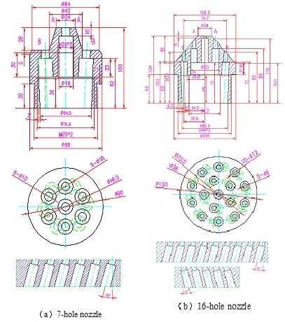 4. The speed of center hole is the largest as compared with other nozzles, and its effect of rock-breaking is the best. Under the same injection rate, the nozzle with 16-hole is much easier for rock-breaking.