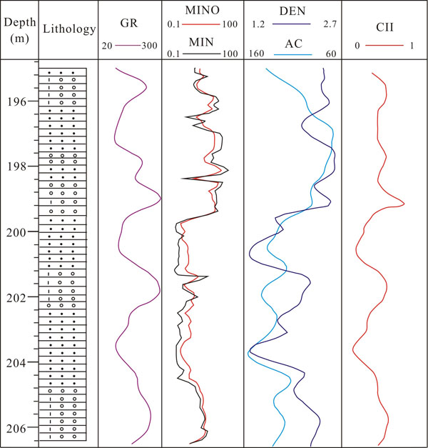 To quantitatively identify calcareous interlayers and develop a calcareous interlayer identification index (CII), we selected the four parameters GR, |1/MIN-1/MINO|, AC and CNL to develop a normalized weighted calcareous interlayer identification function. First, we chose sensitive parameters for the min-max normalization to linearly convert the original data and ensure that the result was in the interval [0,1] to eliminate differences caused by the different numerical ranges. According to the sensitivity values of the parameters, we initialized all of the weights, calculated the value of the CII and automatic divided the calcareous interlayers. By repeatedly testing the weight assignment, we compared the dividing results and the core data to ultimately determine the best weights. Based on the calculation of CII values for different lithologies, when the CII value is greater than 0.46, the calcareous interlayer division effect is optimal, and the total accuracy can reach 82.7%. Thus, we set the CII value to >0.46 for the calcareous interlayer development section.