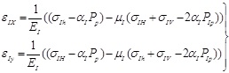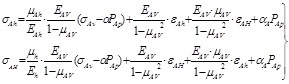 Generally, three directions X, Y, Z are the main stress directions and the vertical stress is the overburden pressure. According to the constitutive equation, the effective stresses of two horizontal directions can be derived as: