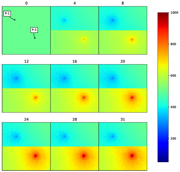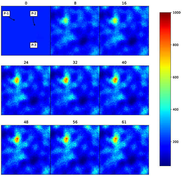 Ensemble Kalman Filter (EnKF) is a procedure that can be implemented to address the problem. The EnKF algorithm is a Monte Carlo approach for extended Kalman filter scheme that has been vastly utilized in many other fields of study [2], such as automation process, control systems [2], ocean dynamics and atmospheric physics [3-5]. Assimilation techniques also have been developed by using flow-dependent statistics in weather forecasting studies [6]. Particularly in history matching process, EnKF has successfully applied to update porosity distribution by incorporating years of production data [7, 8]. Covariance localization concept is commonly incorporated in EnKF in order to alleviate the effect of spurious correlations. Without localization, there is possibility in some scenarios that EnKF does not provide a reliable characterization of uncertainty [9]. Earlier approach to mitigate the spurious correlation is to use distance-dependent reductions [10]. More recent proposed methods were to use well pattern as basis for localization function [11] and to employ streamline concept to identify the grids which are affected by production and injection wells [12]. Similar notion could also be applied to the finite difference simulator by associating fluid velocity fields [13]. The streamline or fluid velocity models may also be used to identify influenced region pertained to each well. This region will be regarded as a cornerstone in defining the covariance localization [14]. The latest updates on localization scheme is by utilizing data driven adaptive localization that update the model that have relatively high correlations [15].