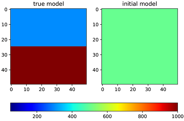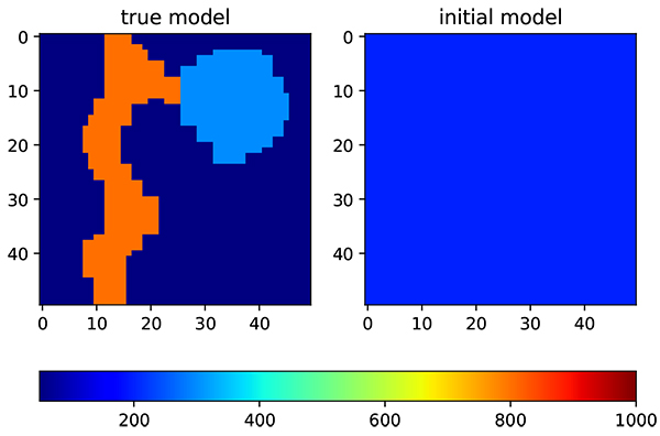 Fig. (5). Permeability distribution. On the left is true model while on the right side is initial distribution. |