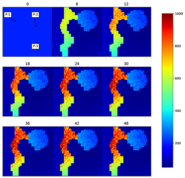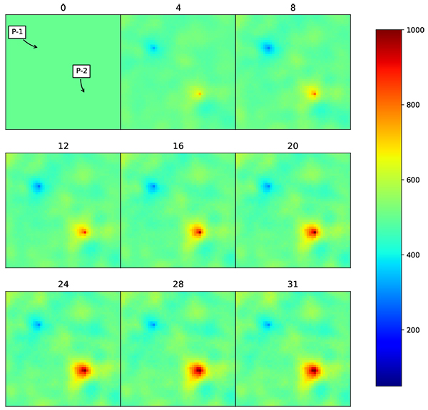 From the snapshot of permeability distribution over time Fig. (12) it shows that the facies model is preserved, while updating the permeability distribution. RMSE for the resulting grid is 229 md, while for production data, Figs. (10 and 11) RMSE for W-1 is 106 BOPD and W-2 is 137 BOPD. The comparison of RMSE for different methods are presented in Table (2). The preservation of facies model gives a real advantage as the updated model does not change the geological concept that has been implemented in the reservoir. Therefore, this algorithm practically can be used in the daily operation in reservoir management workflow.