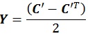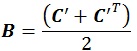 Under Frobenius norm consideration, the existence of a unique solution that is nearest to the matrix C’ can be confirmed by the following equations: