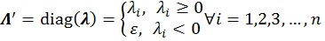is a diagonal matrix consists of eigenvalues derived from the eigenvalue decomposition, while matrix Q is an eigenvectors matrix. If negative eigenvalues are found during the calculation process, these values will be replaced with the smallest positive real number ɛ. This number is limited by the accuracy of numerical representation in computer memory.