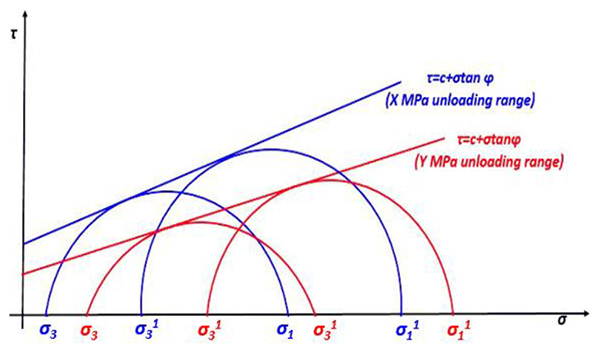 Where Cσ) is cohesion in different unloading range, MPa. φσ) is internal friction angle in different unloading range.