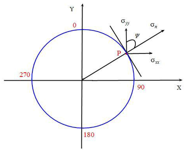 Where σn is the stress along with radial direction, MPa. Δσ is the unloading range, MPa. ϕ is the porosity, %. δ is wellbore permeability coefficient. ψ is included angle between σxx and σn, degree.