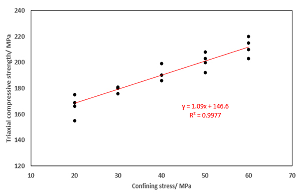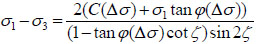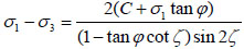 Where σ1 is axial stress, MPa. σ3 is confining stress, MPa. C is the cohesion, MPa. φ is the internal friction angle, degree. ζ is the failure angle of clay-rich shale, degree.