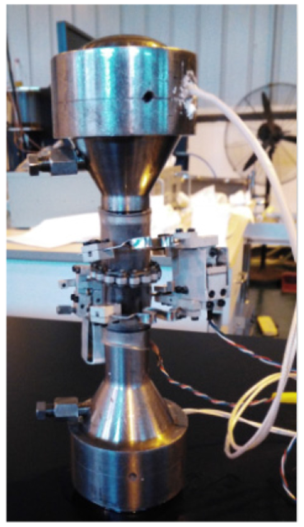 According to above unloading schematic, triaxial test has been designed to simulate unloading condition so that the influence of unloading on clay-rich shale mechanics can be investigated. For triaxial test, the experiment equipment is shown as Fig. (7). Core sample in triaxial test is placed as Fig. (8) and loaded by 2 principal stresses, i.e., axial stress and confining stress (Fig. 9). The procedure of trixial test is that (1) Confining pressure is loaded by hydraulic oil. (2) Under the same confining pressure, axial stress is loaded to compress core sample to failure. (3) The strain and stress gauge on shale sample give the strain-stress curve of compressive process.