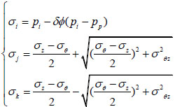 Where σi, σj, σk are principal stresses at one point in the wall of borehole, MPa.