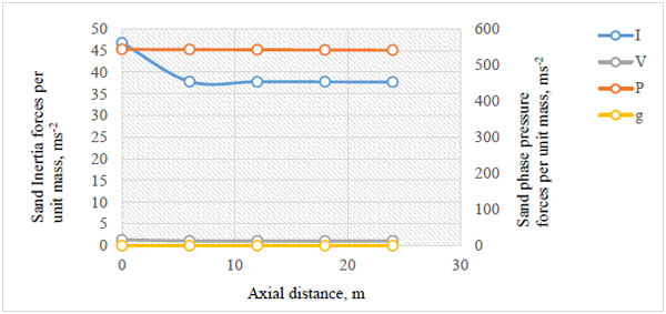 In Fig. (7), The force competition between the pressure and inertia forces shows that the critical point for controlling phase pressures is the 12-18 m points beyond which pressure forces begin to dominate the inertia forces of sand and water which must not settle on the pipe wall if the pipe integrity must be maintained/sustained.