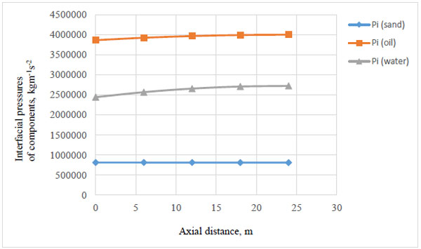 Fig. (9). Interfacial pressure of the components along the axial distance. |