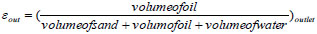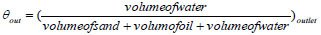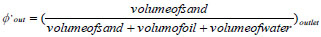 = 43.97/397.79 = 0.1105 is the sand concentration at pipe outlet and the corresponding ε and θ values (oil and water concentrations respectively) are: