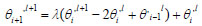 θi+1,l+1 = 1.93×10−3*(0.360625−2*0.36025 + 0.359875) + 0.359875 = 0.359875