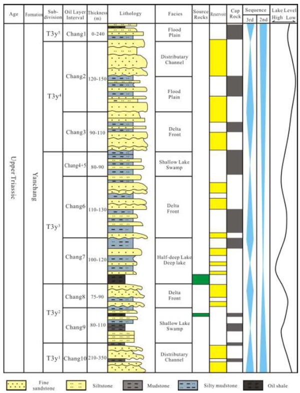 Fig. (2). Stratigraphic subdivisions of the Yanchang Formation in the southwestern part of the Ordos Basin. |