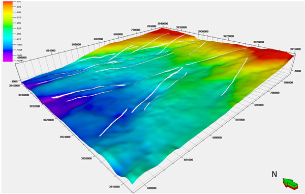 Seismic interpretation of 3D seismic reflection survey data has been carried out to identify faults and horizons and build structural model.