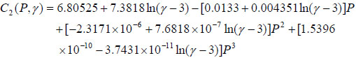 where C1 and C2 are model coefficients that are dependent on the pressure and shear rate.