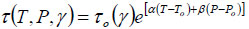 where f(P, T, γ) is a factor that multiplies shear stress obtained at considered conditions. The constant functions g1(P, T) and g2(P, T) are determined by an optimistic fit to measured data. In this case, the intrinsic defects of the selected base models can be avoided, which makes prediction more accurate.