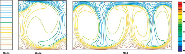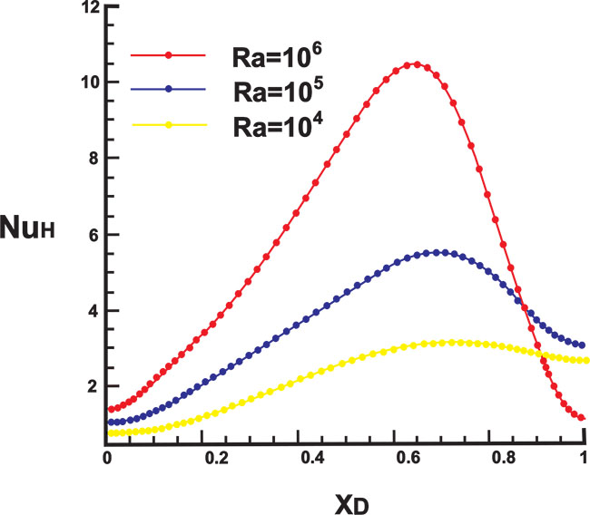 Nusselt number, Nu is one of the most important dimensionless parameters in describing the natural convection heat transfer. The local Nusselt numbers at the hot and cold walls are calculated as by Equation 25: