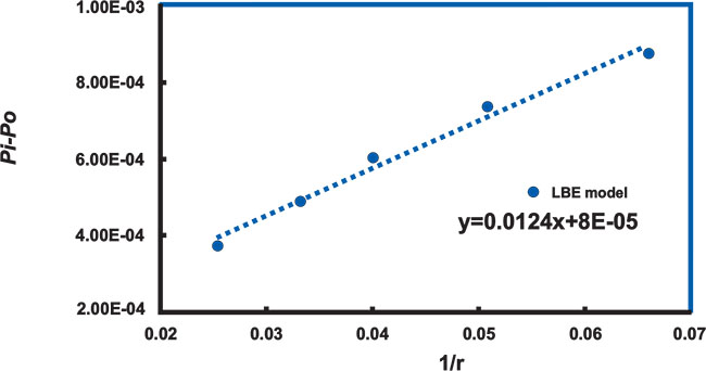 The Navier-Stokes (N-S) equations are recovered with LBE model for fluid flow near the incompressible limit and then the viscosity in the N-S equations is obtained as below [27]: