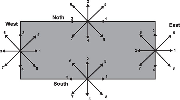 For 2-D flow, the nine-velocity LBE model on the 2-D square lattice can be applied which is, represented as the D2Q9 model. This model has been widely used in the literature. The equilibrium distribution for the D2Q9 model can be identified as below Equation 3 [27]:
