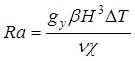 The conditions for the onset of convection can be determined by the value of the Rayleigh number (Ra), which is a dimensionless group that relates buoyant destabilizing forces to viscous and conductive restoring ones. The value of this parameter must exceed a certain critical value (Rac) to start the natural convection. For a layer of fluid enclosed between horizontal impermeable surfaces with a linear temperature profile, this value is well established as Equation 1 [3]: