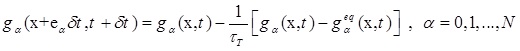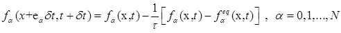 The standard LBE with the Bhatnagar-Gross-Krook (BGK) estimation can be presented as below Equation 2 [27]: