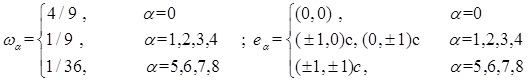 Below correlations are the weighting factor and discrete velocity for the D2Q9 model shown in Equation 4 [27]: