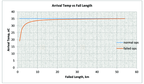 | S/N | Fail_length, km | Total heat loss Profile, J/H | Arrival Temp. oC | S/N | Fail_length, km | Total heat loss Profile, J/H | Arrival Temp. oC |