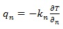 Where the heat flux qn (W/m2) is the heat transfer rate in the n direction per unit area perpendicular to the direction of heat flow. kn(W/m · K) is the thermal conductivity in the direction n, and ∂T /∂n (K/m) is the temperature gradient in the direction n.