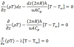 - Perfect insulation is assumed, thus the wall temperature is constant and uniform (i.e., does not change in the z or r direction) at a value TW.