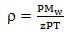 Mw = molecular weight of the gas stream and z = the compressibility factor.