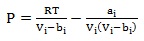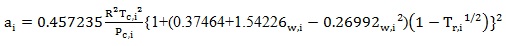 Where the EOS parameters, ai and bi are given for each model as follows: