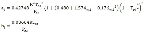 Numerous Equations of State (EOS) models have been developed. Suffice it to say that polynomial equations that are cubic in molar volume offer the best compromise of accurately describing the behavior of fluids over wide range of operating conditions. They include: Van der Waal, Redlich-Kwong (RK), Soave-Redlich-Kwong (SRK), and Peng-Robinson (PR), equation of states. SRK and PR EOS have been found to provide results sufficiently accurate for engineering purposes, they are given below: