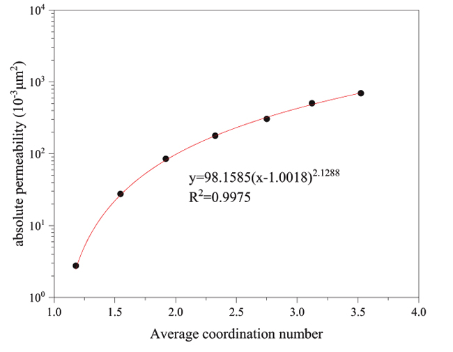 Fig. (2). Average coordination number and absolute permeability relation curve. |