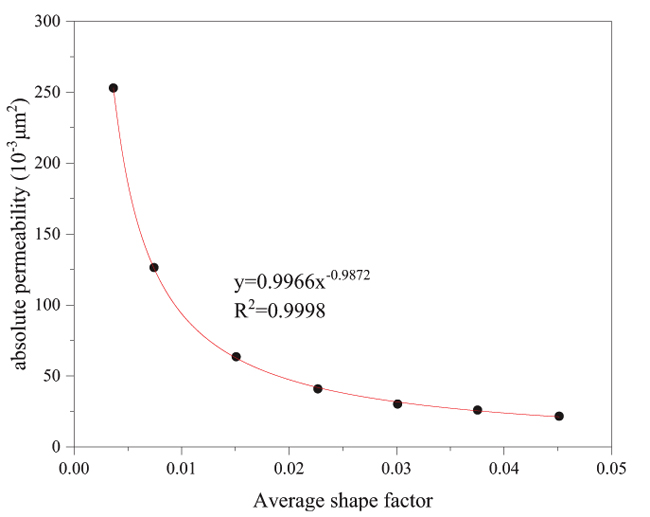 Based on the analysis of the influence of pore structure parameters on absolute permeability, the absolute permeability calculation model is constructed: