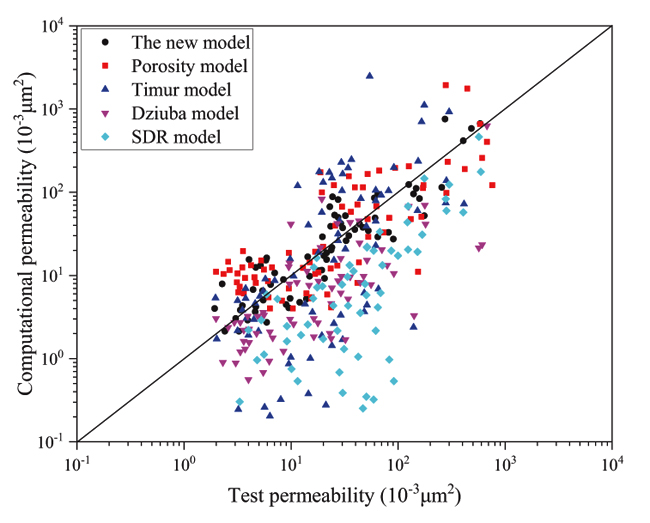Comparing to Timur model, Dziuba model and SDR model, the calculation results of our permeability model is more accurate, which shows in Fig. (7).