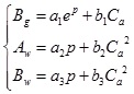 Gas phase coefficient Bg and water phase coefficient Aw and Bw can be expressed as linear combination forms of each parameter: