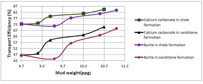 Fig.(2). Effect of weighting materials on transport efficiency in shale and sandstone formations.