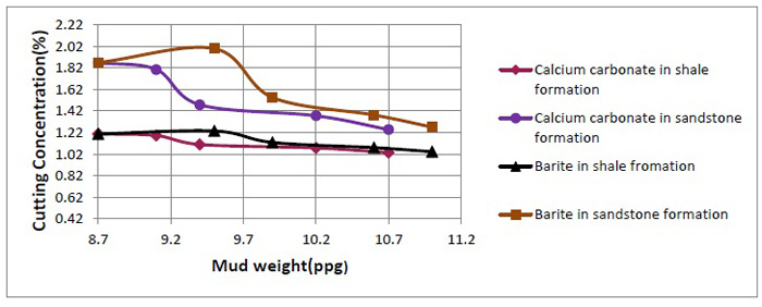2. Calcium carbonate gave a better result in terms of cutting concentration compared to barite in both shale and sandstone formations.