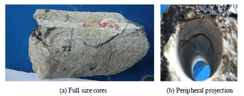 Working liquid losses will occur in natural fractures developed formation when dynamic pressure exceeds fluid pressure in fractures. Lost rate depends on the pressure difference between dynamic pressure and pore pressure, development level, interconnected status, width, length of natural fractures, and rheological properties of liquids in porous media. Lost circulation caused by induced fractures may occur during engineering practice. Reasons for producing induced fractures include the vibration of drill stem joint, stress release of formation and induced fracturing by higher dynamic pressure in wellbore. Generally, fractures induced by vibration of drill string and stress release will not lead to serious fluid losses, while fractures resulting from fracturing or opened by pressure may bring about severe lost circulation. Induced fractured leakage will be generated under the following four conditions: fracturing low pressure formations using drilling fluid with higher density during drilling high (a) Full size cores (b) Peripheral projection (a) Vertical (b) Netlike (c) Oblique (d) Induced pressure oil and gas reservoirs; pressure surge caused by rapid lowering of the drill pipe, casing, bit balling and centralizer mud packing into the hole; the shear stress of fluid in wellbore is too high and pump is opened too quickly and the closed natural fractures are opened by dynamic pressure of liquid in wellbore.