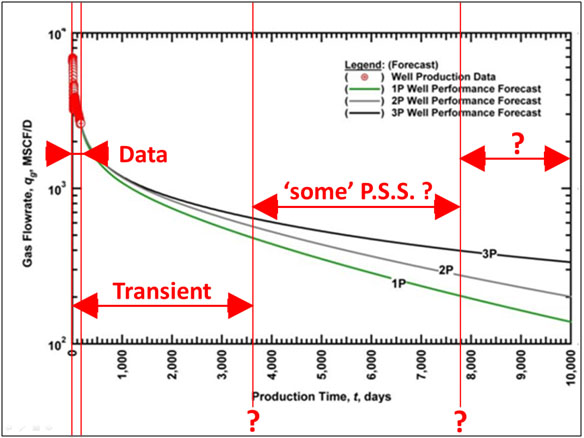 In ultra-low permeability reservoirs it is common to observe basic violations of these assumptions, hence the misapplications of the Arps' relations to production data with significant overestimation of reserves, specifically when the hyperbolic relation is extrapolated with a b-exponent greater than 1.