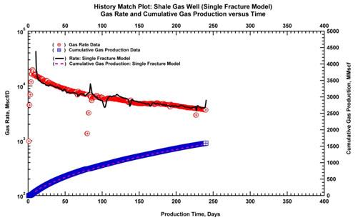 Fig. (14a). History match plot using a single fracture model. |