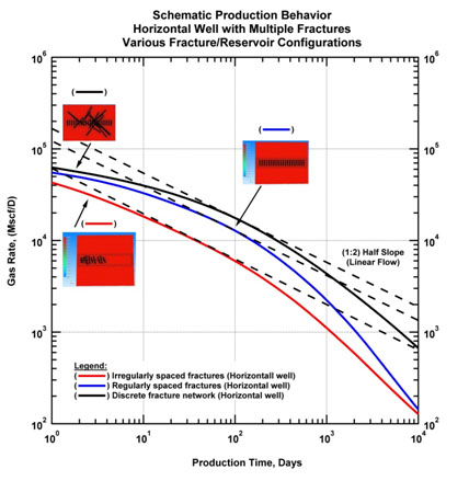 - In order to compensate the drop in permeability we increase the magnitude of the contact area between the well and the formation by the means of running multiple fractures along a drain that is generally horizontal. So the well models are much more complex, even assuming we exactly know the fractures geometries, which is seldom the case.