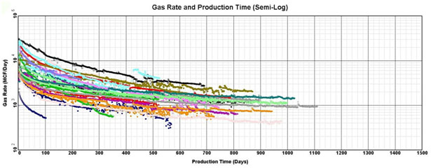 The use of DCA in unconventional plays is problematic. A prerequisite to any discussion is the understanding that no simplified time-rate model can accurately capture all elements of performance. The analyst should be realistic and practical when attempting to characterize production performance of systems where permeability is on the order of nanodarcys. Although the hydraulic fractures enable economic production performance, today we only have a basic understanding of the flow structure in the hydraulic and natural fracture systems.