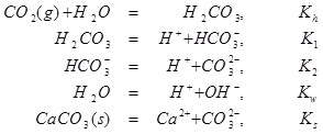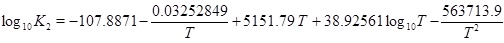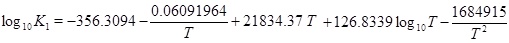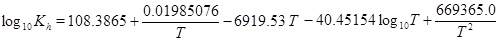 The mass-action parameters are taken from Stumm and Morgan [15], where the temperature is in Kelvin and the pressure that is multiplied with Kh is in units atm.