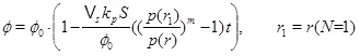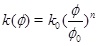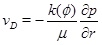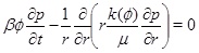 for a horizontal aquifer with constant thickness and radial symmetry around the well. The radius is r, β is the effective compressibility, µ is the viscosity and k(Ø) is the absolute permeability as a function of porosity ϕ given as