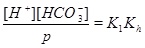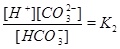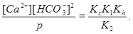 by inserting [H+] from equation (12) into equation (13), which then gives [CO2-3] expressed with [HCO-3]. The approximation 2[Ca2+]≈[HCO-3] then leads to [15]