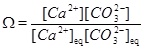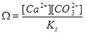 where the mass action constant Ks is replaced by the product of the equilibrium concentrations of Ca2+ and CO2-3. We can express the saturation index in terms of calcium ion concentrations by first using the two mass action laws (12) and (13) to replace [CO2-3] by [HCO-3]2. These mass action laws apply both for the equilibrium and the non-equilibrium state. From electro neutrality we have the approximation 2[Ca2+]≈[HCO-3], which then gives