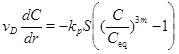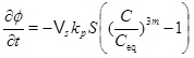 On the other hand, in the kinetics-limited regime we need the kinetics, because we are not close to equilibrium. We can use the reaction-advection equation (21) to obtain an expression for the rate of change of porosity